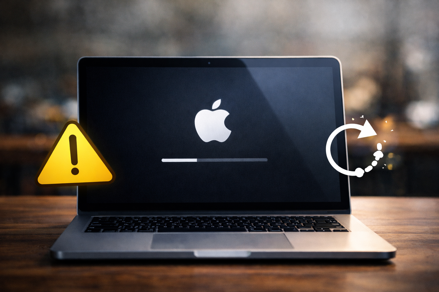 Macの電源を入れるとリンゴマークは表示されるものの、